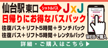 【行き】仙台駅発8:00→スキー場着9:30 【帰り】スキー場発 15:30→17:00着予定
