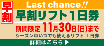 | OPEN時間 | 8:00~営業終了 (土日祝日のみ9:00~11:00リフト券販売) |