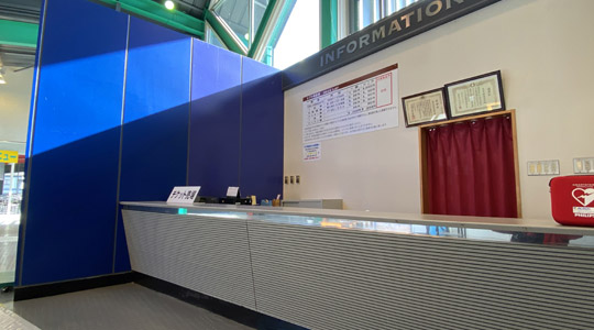 チケット売場と総合案内を兼ねたカウンターをプラザ内に設置しております。※休日のチケット売場はゲレンデ側になります。