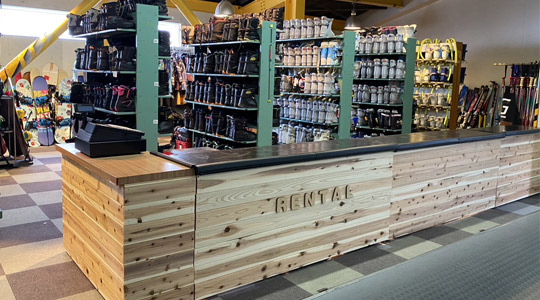 センタープラザ内にあるレンタルコーナーでは、専属のスタッフがしっかりとメンテナンスされた用具をご提供します。