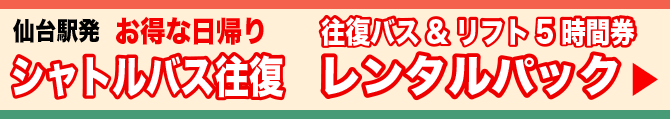 【行き】仙台駅発8:00→スキー場着9:30 【帰り】スキー場発 15:30→17:00着予定