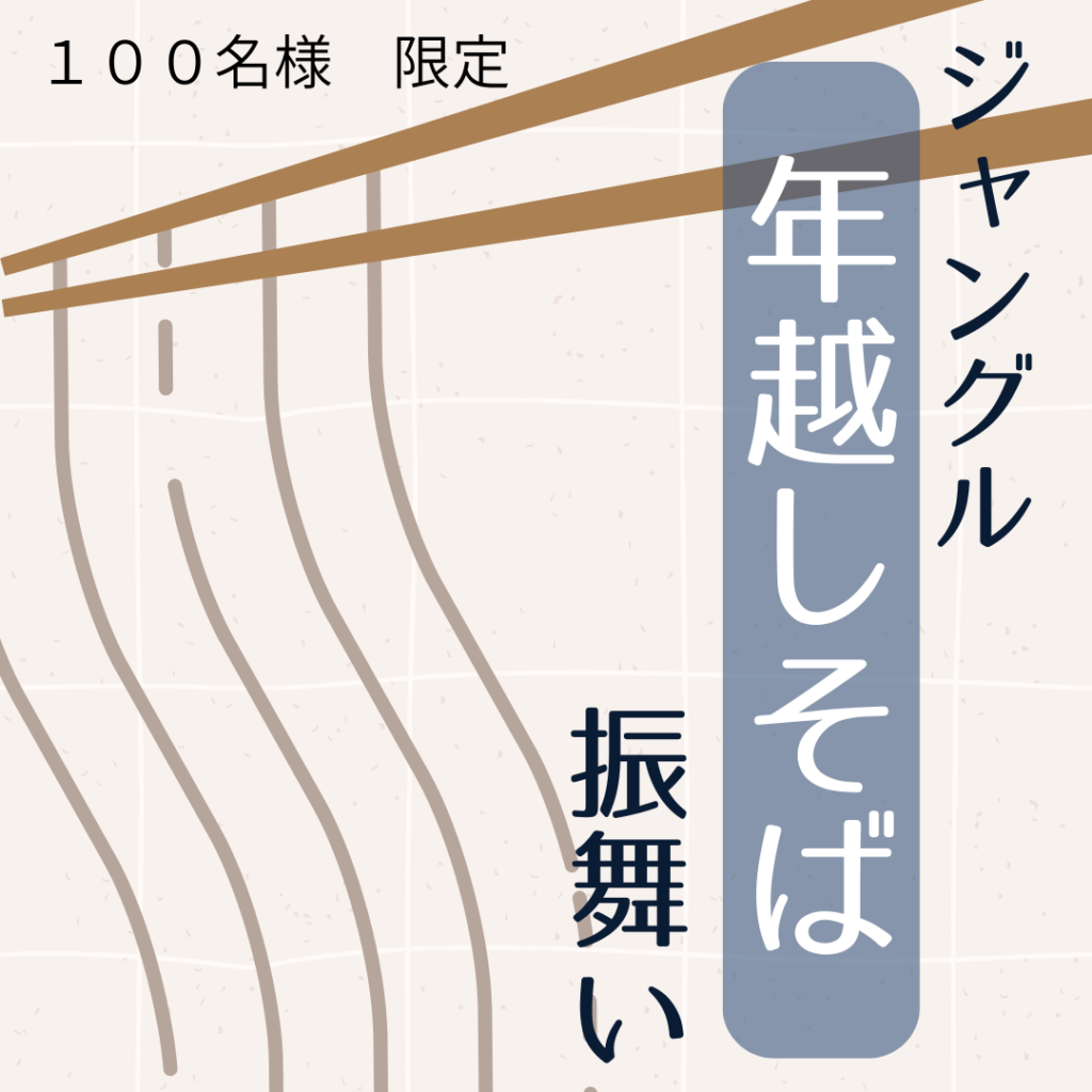 12月31日(水)14:00 ジャングル・年越しそば振る舞い! 12月31日(水) 14:00より ジャングルプラザにて 「年越しそば 振舞い」を開催いたします。 日頃の感謝を込めて 先着100様限定に、お蕎麦を無料で配布致します。 ……