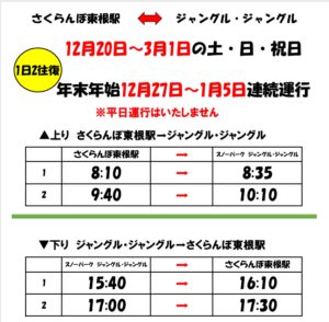 2025-2026シーズン さくらんぼ東根駅発シャトルバスの時刻表