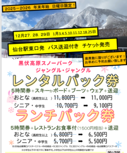 仙台駅東口からバス送迎付チケットが期間限定で販売します